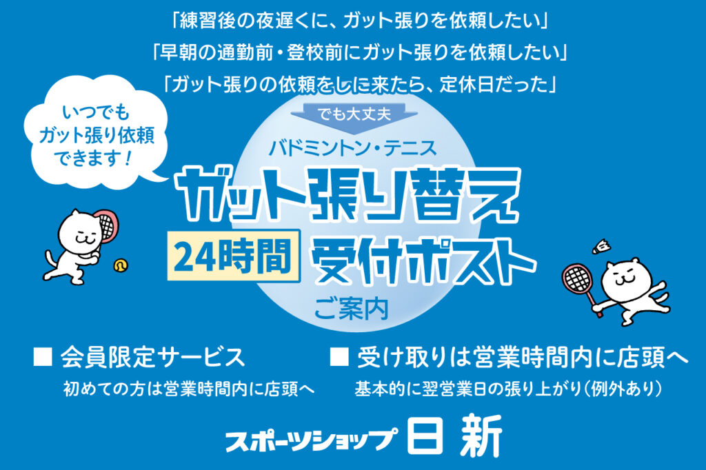 1月4日は10時より開店いたします。5000円以上のラケット、シューズ全品10%OFF!(現金でのお支払いのみ)1日限りの特別セールを開催いたしますので、皆さんぜひご来店ください。お待ちしております。